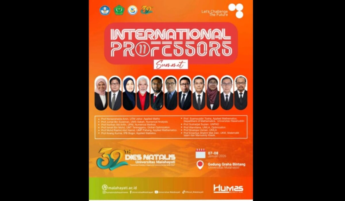 Bandar Lampung (Lampost.co)—Universitas Malahayati akan menggelar International Professors Summit 2026 pada 7–8 Januari 2026 di Gedung Graha Bintang Universitas Malahayati. Kegiatan berskala internasional ini menjadi bagian dari rangkaian dies natalis ke-32 Universitas Malahayati.