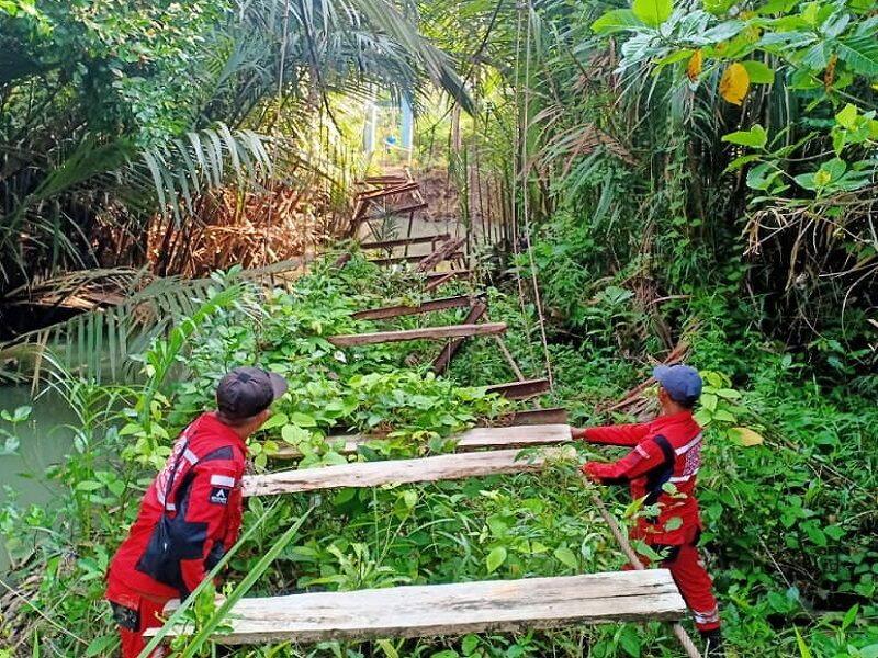 Jembatan Gantung Tampang Muda Tanggamus yang rusak viral karena membahayakan anak sekolah dan warga.