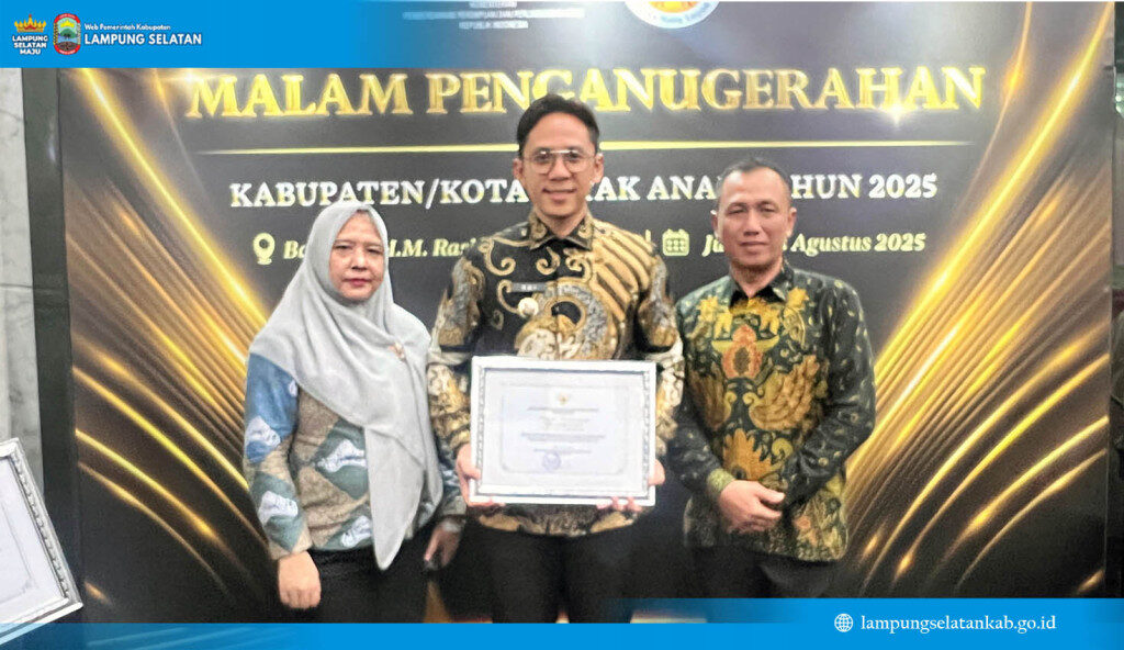 Penghargaan tersebut Bupati Lampung Selatan, Radityo Egi Pratama terima dari Menteri Pemberdayaan Perempuan dan Perlindungan Anak (PPPA) yang diwakili Wakil Menteri PPPA Veronica Tan. Acara Penganugerahan KLA 2025 di Auditorium KH. M. Rasjidi, Kementerian Agama RI, Jakarta Pusat, Jumat, 8 Agustus 2025.