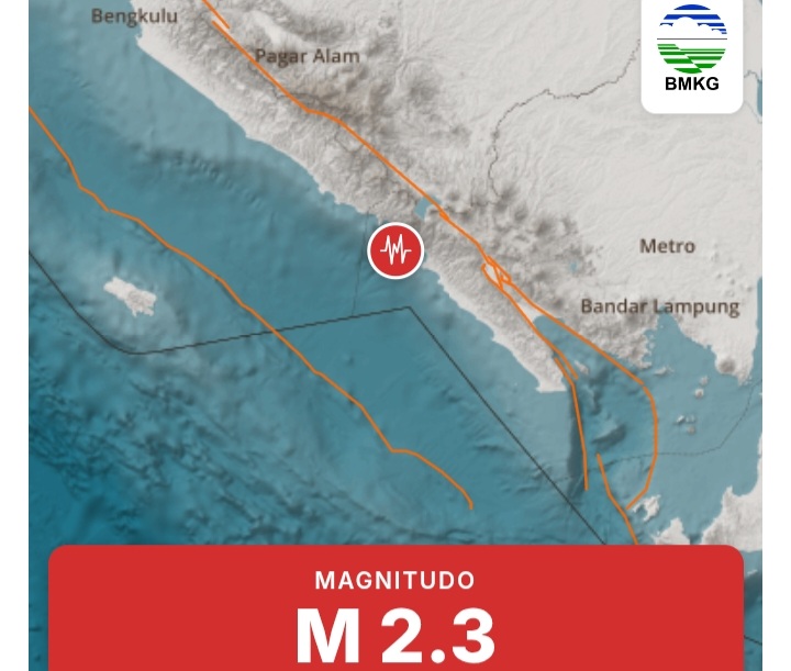 “Gempa 2.3 magnitudo, Rabu, 04 Februari 2026 pukul 23:42:57 WIB. Lokasinya 5.13° LS, 103.75° BT, 21 km Barat Laut Pesisir Barat – Lampung dengan kedalaman 5 km,” tulis BMKG dalam siarannya.