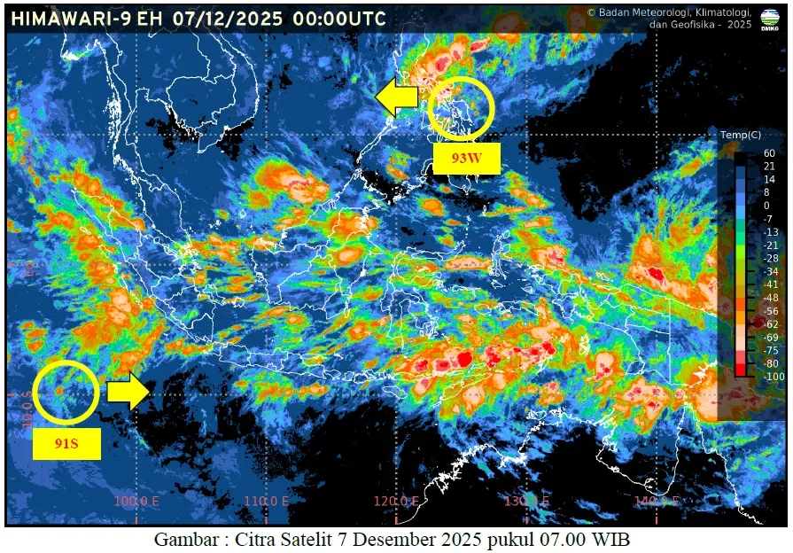 Peringatan dini cuaca Lampung. Masyarakat perlu mewaspadai dampak bibit siklon tropis 91S yang berpotensi terjadi.