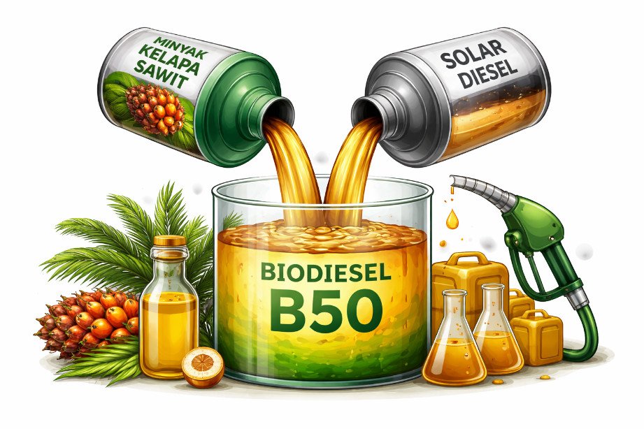 Program Biodiesel B50 menggabungkan 50 persen minyak kelapa sawit (CPO) dengan solar. Selama hampir enam bulan, pemerintah menguji bahan bakar ini pada berbagai moda, mulai dari alat berat, kapal, kereta api, hingga truk dan kendaraan operasional lainnya.