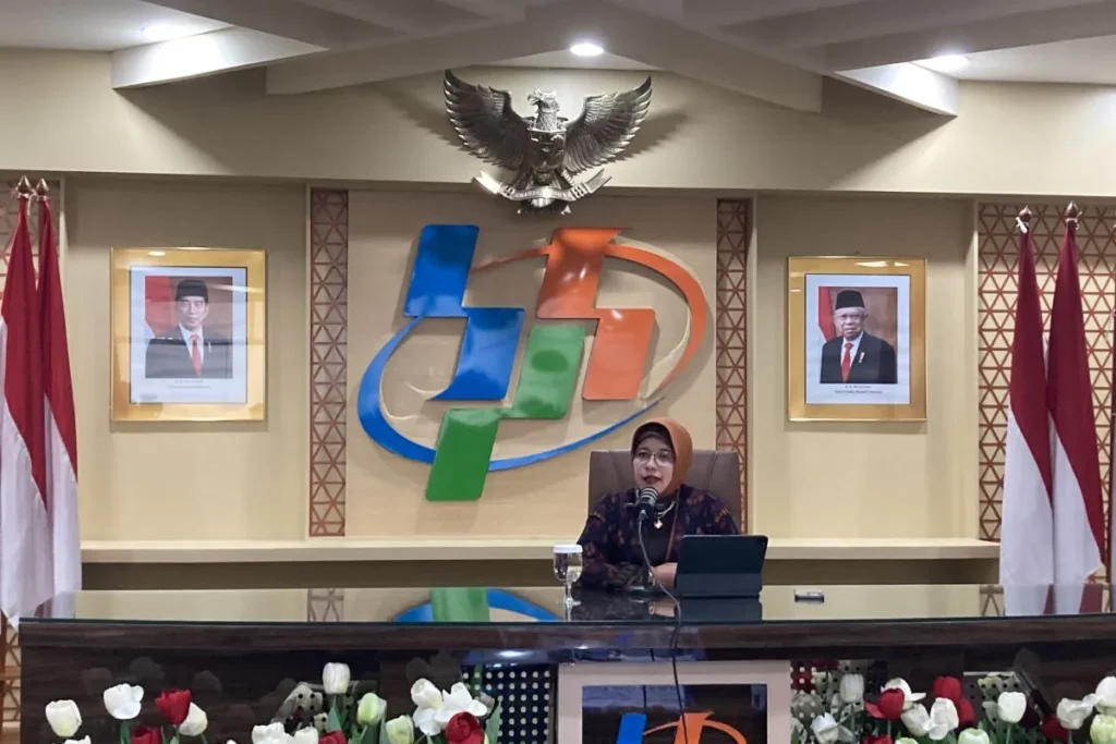 Pelaksana Tugas (Plt) Kepala Badan Pusat Statistik (BPS) Amalia Adininggar Widyasanti saat konferensi pers, di Jakarta, Jumat, 30 Agustus 2024. (Foto: Dok. ANTARA)