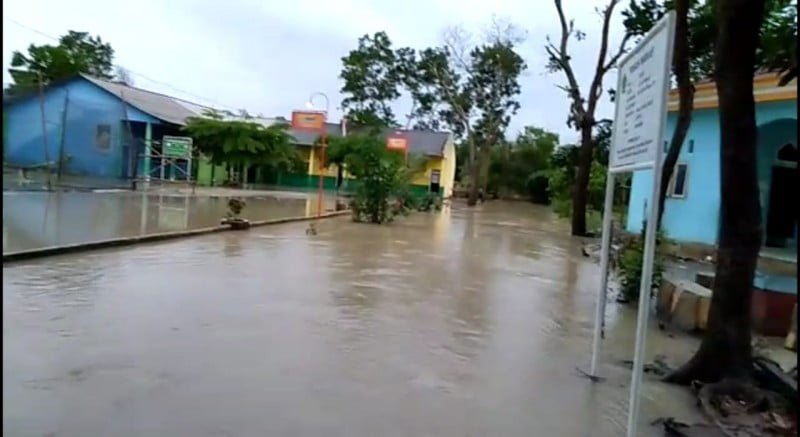 Jasudin menduga air meluap ke badan jalan dan halaman warga akibat belum semua drainase yang menghubungkan sungai kecil ke sungai besar dibangun oleh pemerintah setempat.