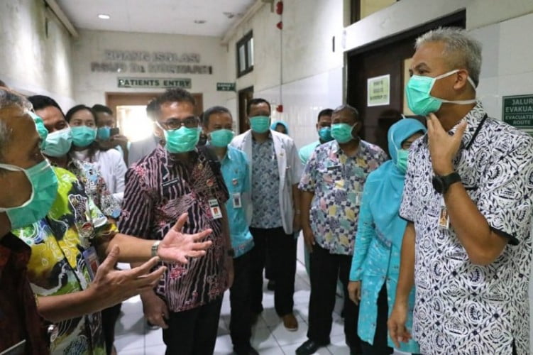 Gubernur Jawa Tengah Ganjar Pranowo mengecek kesiapan RSUD Dr. Moewardi Kota Surakarta menangani pasien yang diduga terinfeksi virus korona jenis baru, Rabu, 4 Maret 2020. (Antara/Humas Pemprov Jawa Tengah)