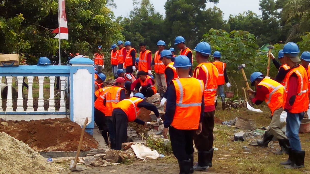 PENINGKATAN KUALITAS. Sejumlah peserta menunjukkan kemampuannya pada uji kompetensi tukang batu di Balai Desa Sukadana, Lampung Timur, pekan lalu. Sertifikasi tenaga kerja konstruksi dilakukan untuk meningkatkan kualitas diri maupun produk konstruksi. (ISTIMEWA)