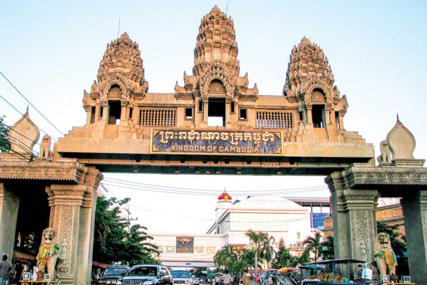 Gerbang masuk Kamboja dari perbatasan Thailand. (Foto: Pnomp Penh Post)