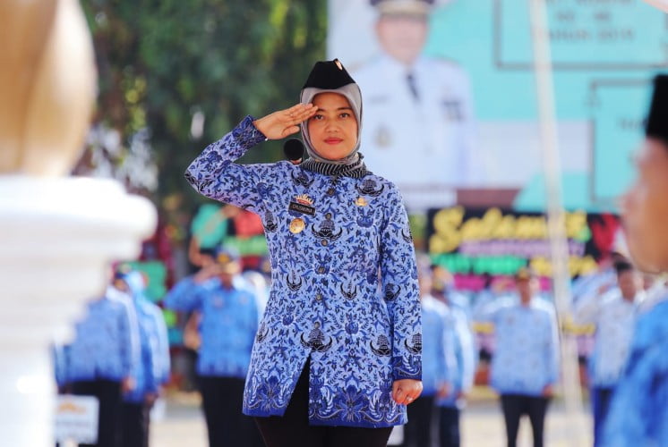 Wakil Gubernur Lampung Chusnunia Chalim (Nunik) saat menjadi Inspektur Upacara pada Upacara Peringatan HUT Korpri Ke- 48 Tahun 2019, di Lapangan Korpri, Komplek Kantor Gubernur Lampung, Jumat (29/11/2019). (Foto: Humas)