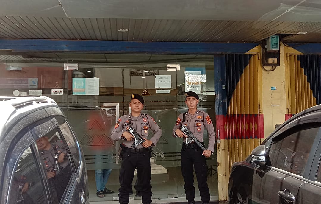 Lampungpost.id–Pascaperampoan pada Jumat, 17 Maret 2023, Bank Arta Kedaton Makmur Bandar Lampung dijaga dua personel polisi. Dua personel itu berdiri di depan pintu masuk, lengkap dengan senjata laras panjang.