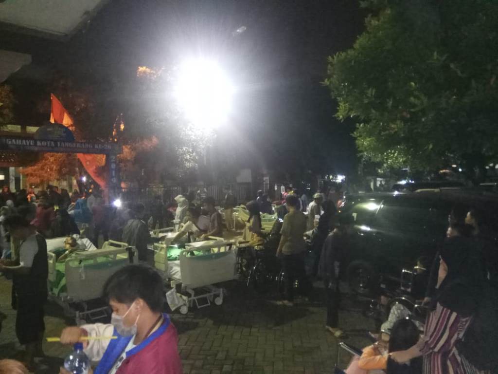Sejumlah pasien RSUD Kota Tangerang dievakuasi ke halaman Kantor Kelurahan Kelapa Dua. Medcom.id/Hendrik Simorangkir