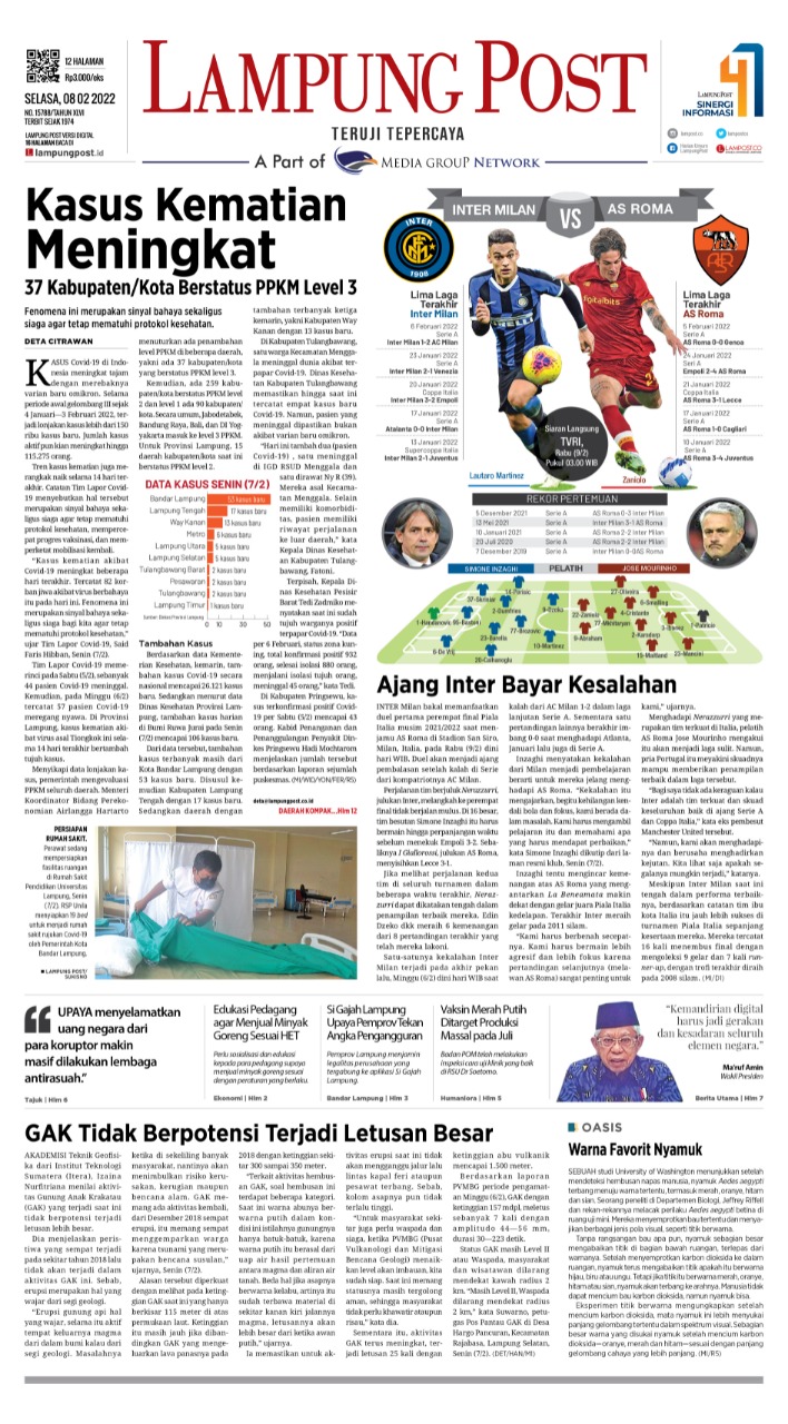 E-paper Lampung Post, Edisi Selasa, 8 Februari 2022