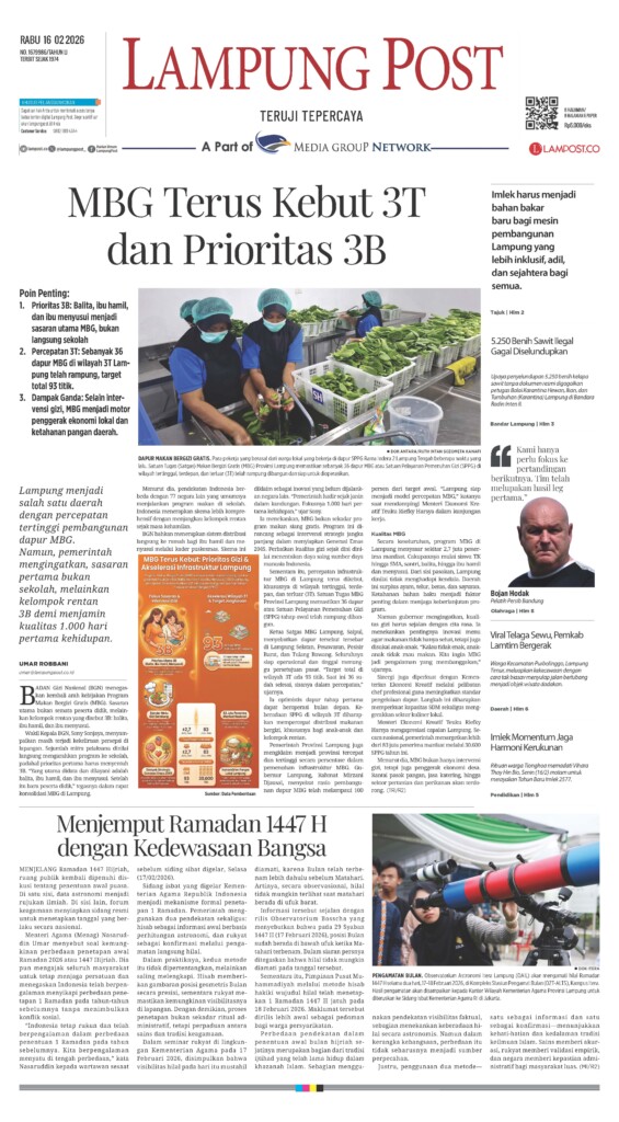 Koran Digital Lampung Post, Edisi Senin, 16 Februari 2026