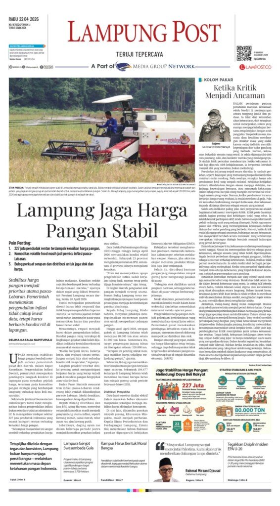 Koran Digital Lampung Post, Edisi Rabu, 22 April 2026