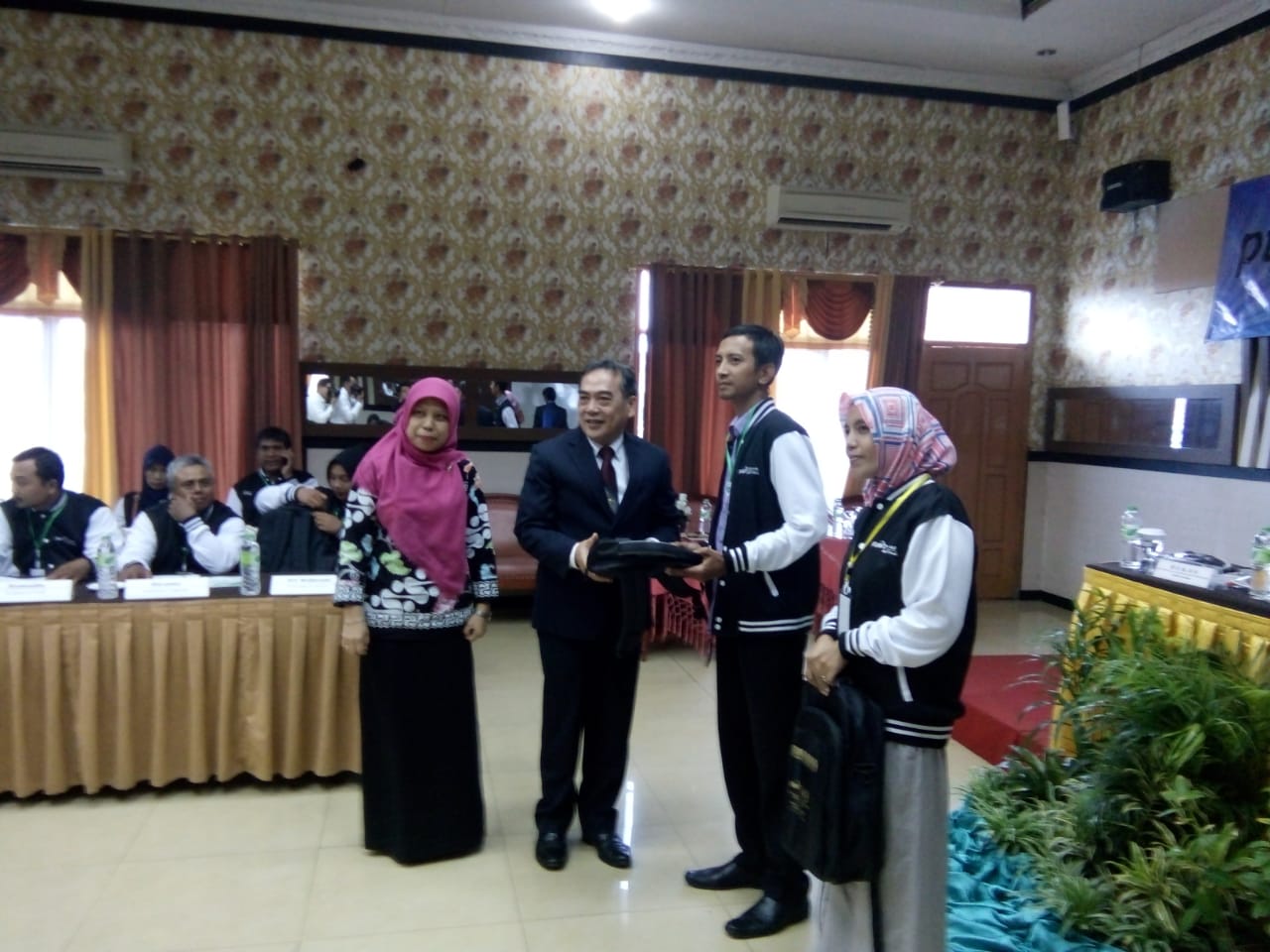 PEMBUKAAN PELATIHAN MANAJEMEN. Dekan FEB Unila Satria Bangsawan menyerahkan seminar kit kepada peserta pelatihan manajemen PTPN VII di Hotel Nusantara, Bandar Lampung, Rabu (12/12).DOK.PTPN VII