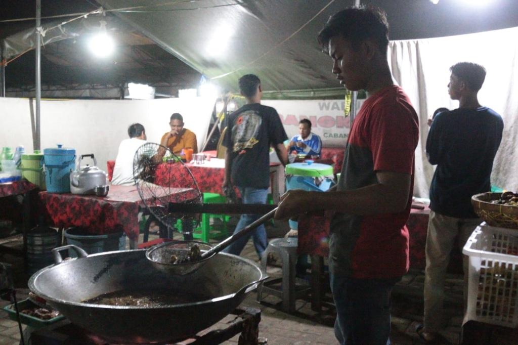 KENAIKAN BAHAN POKOK. Pedagang pecel lele sedang menyiapkan pesanan konsumen di pinggir Jalan Pulau Legundi, Sukarame, Bandar Lampung, Jumat (24/6). Sejak awal 2022, masyarakat dihadapi kenaikan berbagai bahan pokok, yang paling meresahkan adalah harga minyak goreng yang sempat menyentuh harga Rp40 ribu/liter. n LAMPUNG POST/SUKISNO