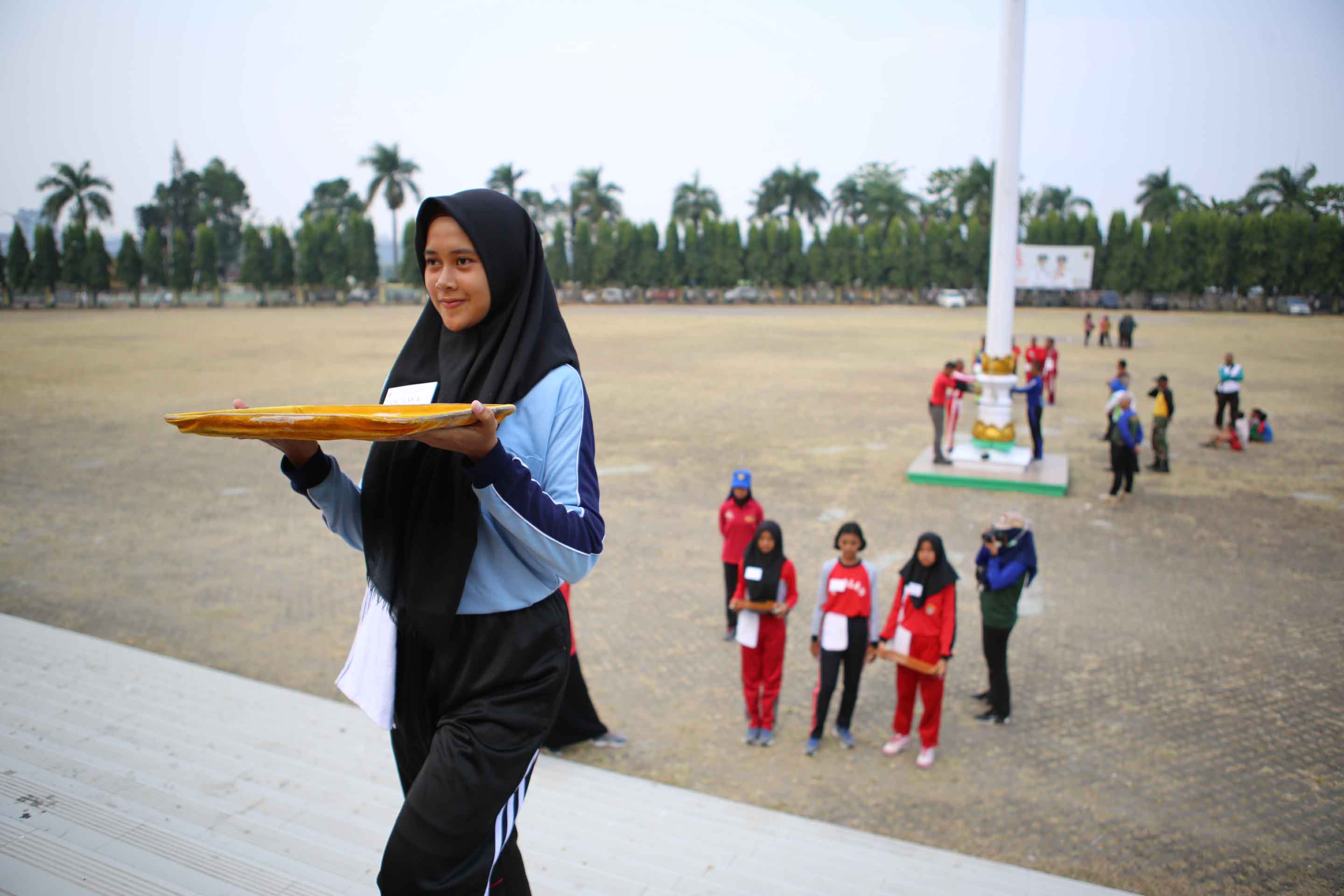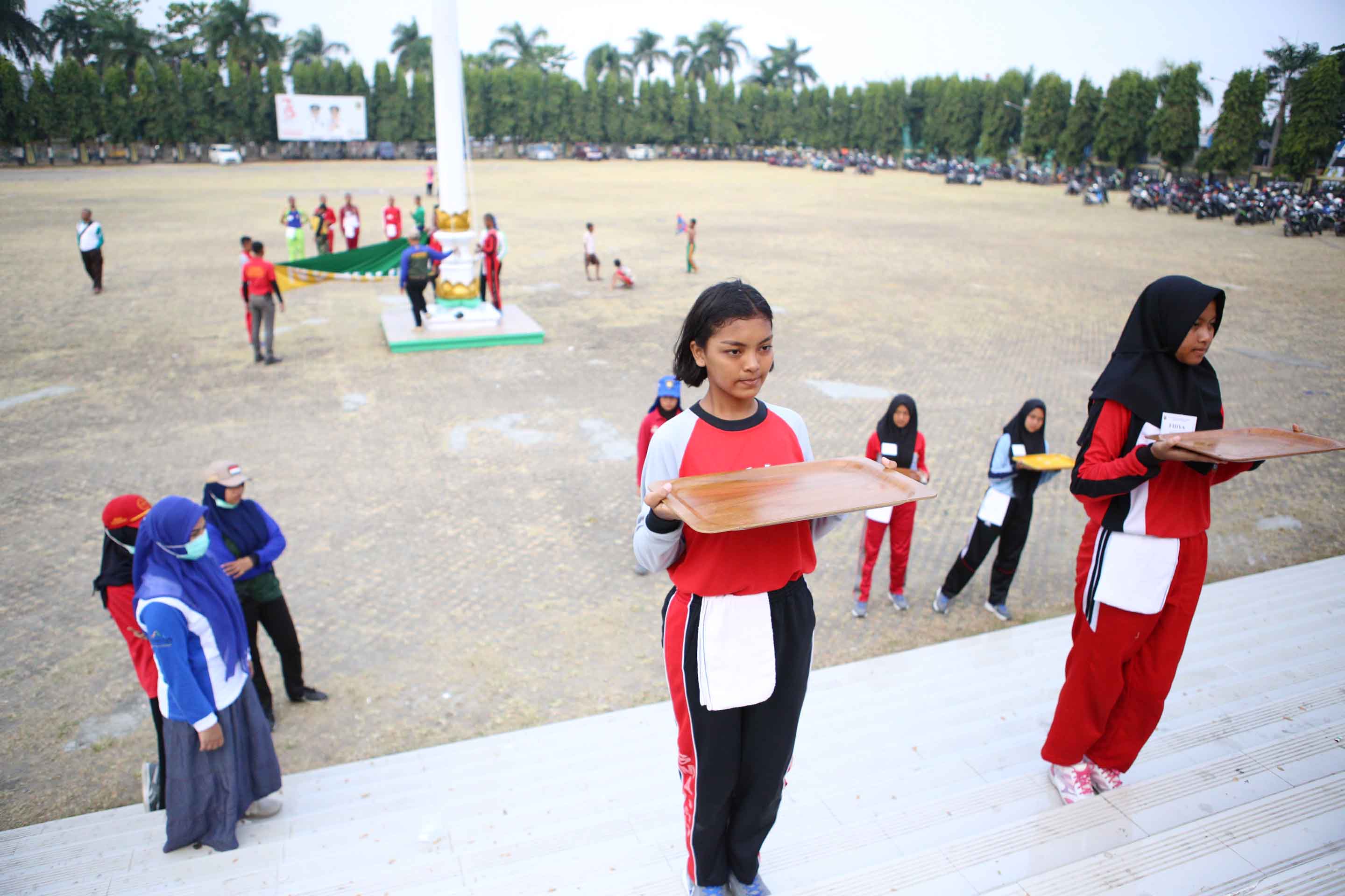 PASKIBRA. Paskibra Provinsi Lampung melakukan geladi bersih upacara HUT  Republik Indonesia di Lapangan Korpri, Pemerintahan Provinsi Lampung, Bandar Lampung, Kamis (9/8).LAMPUNG POST/IKHSAN DWI NUR SATRIO