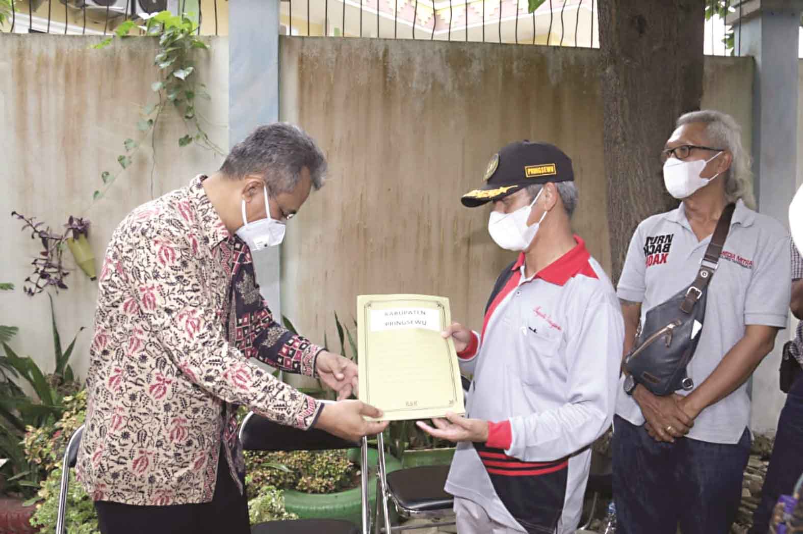 Kepala Instalasi Farmasi Provinsi Lampung Aris Aviantono menyerahkan vaksin kepada Bupati Pringsewu Sujadi, beberapa waktu lalu.  Kabupaten Pringsewu siap menjalankan vaksinasi seiring telah di kirimnya 4200 dosis untuk 2100 tenaga kesehatan (nakes) tahap pertama yang akan di mulai Februari 2021.