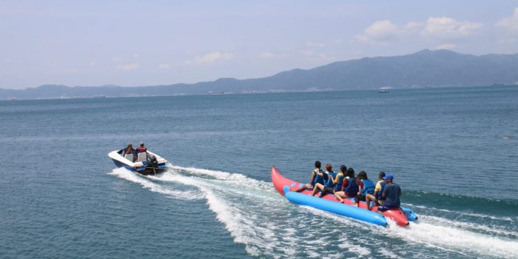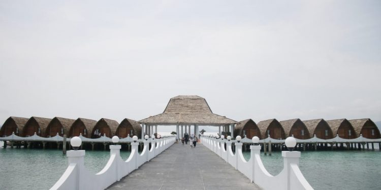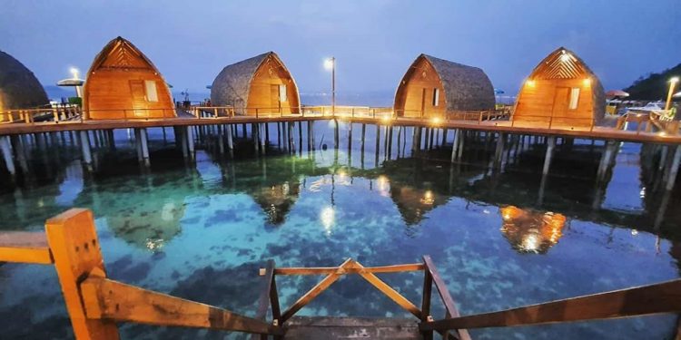 PULAU TEGAL MAS MULAI BUKA KEMBALI. Suasana di Pulau Tegas Mas, Pesawaran, Lampung, saat sore hari. Tempat wisata Pulau Tegal Mas, Puncak Mas, dan Bukit Mas mulai dibuka kembali namun dengan tetap mengedepankan protokol kesehatan 3M.