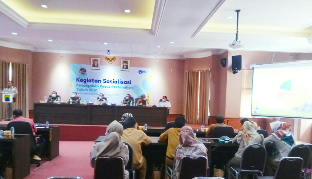 PENCEGAHAN SENGKETA TANAH. Kantor Pertanahan ATR/BPN Lampung Selatan menggelar sosialisasi pencegahan kasus pertanahan di Aula Krakatau Kantor Bupati Lamsel, Senin (22/11). Pencegahan sengketa tanah salah satunya untuk menghindari terjadinya konflik. LAMPUNG POST/JUWANTORO