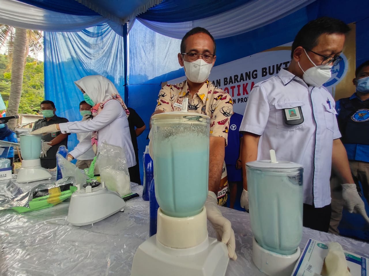 Kabag Umum BNNP Lampung Romansyah, saat memusnahkan sabu dengan cara diblender di Lempasing, Rabu (30/12). DOK.