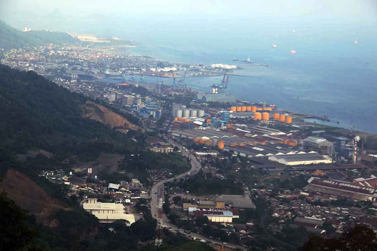 KAWASAN INDUSTRI. Suasana kawasan industri dan pelabuhan yang berada di Teluk Lampung, Bandar Lampung, Rabu (8/7). Pembangunan sentra industri di Provinsi Lampung diharapkan bisa mendorong kejayaan pertanian dan perkebunan. Hal tersebut melihat melimpahnya produksi komoditas di sektor tersebut. LAMPUNG POST/SUKISNO