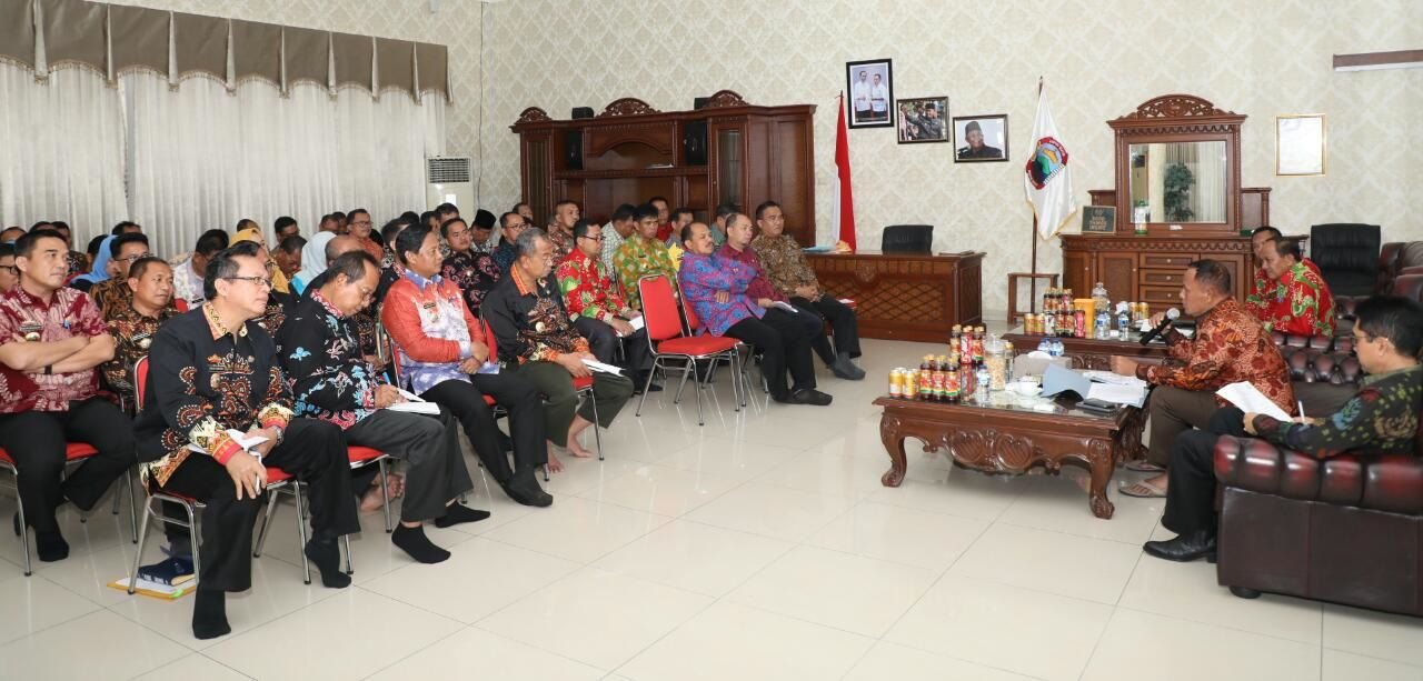 RAPAT. Plt Bupati Lampung Selatan menggelar rapat dengan para pejabat di lingkup Pemkab setempat di rumah dinas bupati, Jumat (7/12). (DOKUMENTASI DISKOMINFO LAMSEL)