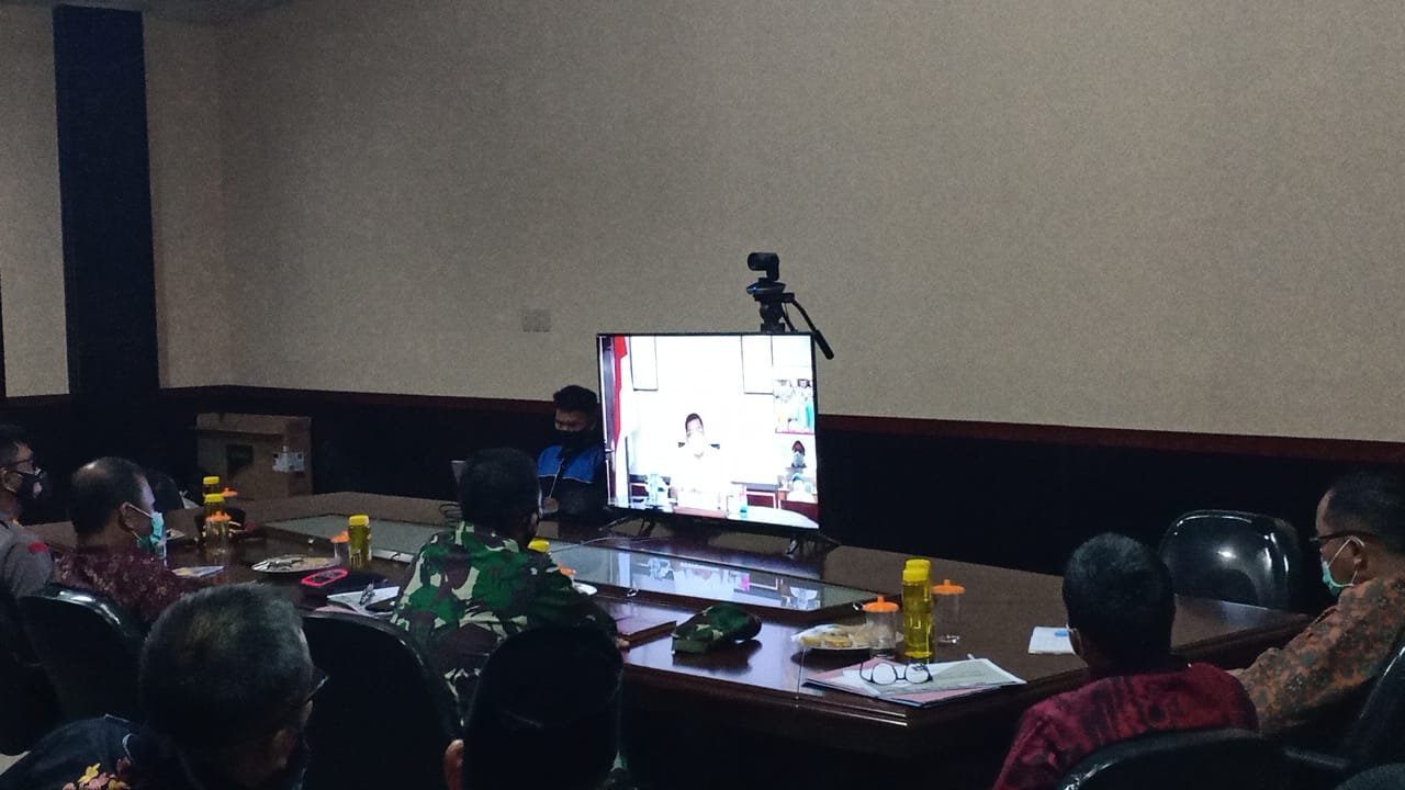 PERSIAPAN PILKADES. Pemerintah Kabupaten Tulangbawang Barat menggelar rapat koordinasi virtual dengan Mendagri M Tito Karnavian terkait pelaksanaan pilkades serentak 2020 di ruang rapat Bupati Tubaba, Kamis (10/12). DOK.