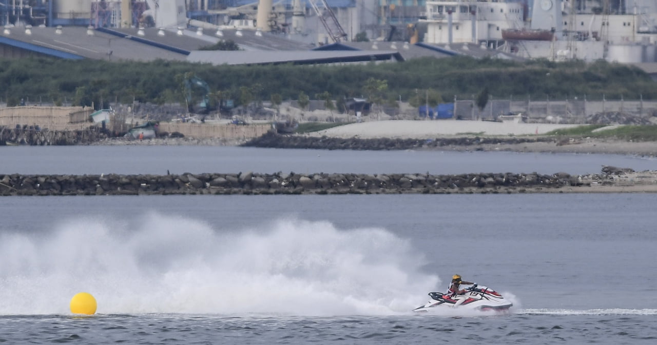 JUARA DUNIA. Atlet jetski Indonesia Aero Sutan Aswar saat berlaga pada ajang Jetracer World Championship 2019 di Jetski Indonesia Academy, Ancol, Jakarta, Maret lalu. Aero merebut gelar juara dunia pada Kejuaraan Dunia Jetski 2019 di Lake Havasu City, Arizona, Amerika Serikat, 5—13 Oktober. (ANTARA/HAFIDZ MUBARAK A)