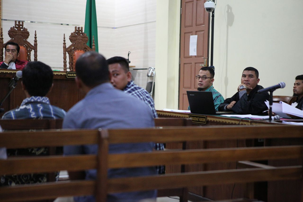 KORUPSI PUPR LAMSEL. Anggota DPRD Lampung nonaktif Agus Bhakti Nugroho (dua kanan) yang menjadi terdakwa kasus dugaan suap fee proyek di Dinas PUPR Lampung Selatan mendengarkan keterangan saksi saat sidang di Pengadilan Tipikor Bandar Lampung, Lampung, Kamis (10/1). (LAMPUNG POST/IKHSAN DWI NUR SATRIO)