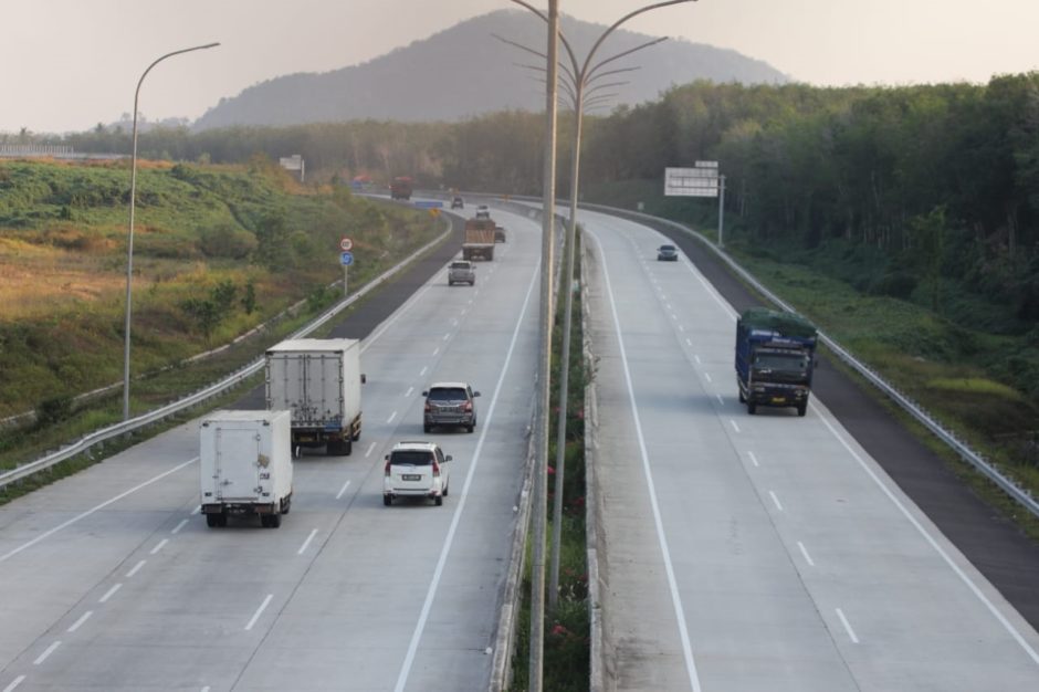 TOL NONTUNAI. Pengendara melintas di tol trans-Sumatera, tepatnya dekat pintu Tol Lematang, Tanjungbintang, Lampung Selatan, Minggu (23/2). Pengguna jalan tol Bakauheni—Terbanggibesar mulai bersiap karena akhir Februari pengelola jalan tol sudah tidak menerima pembayaran secara tunai. n LAMPUNG POST/SUKISNO
