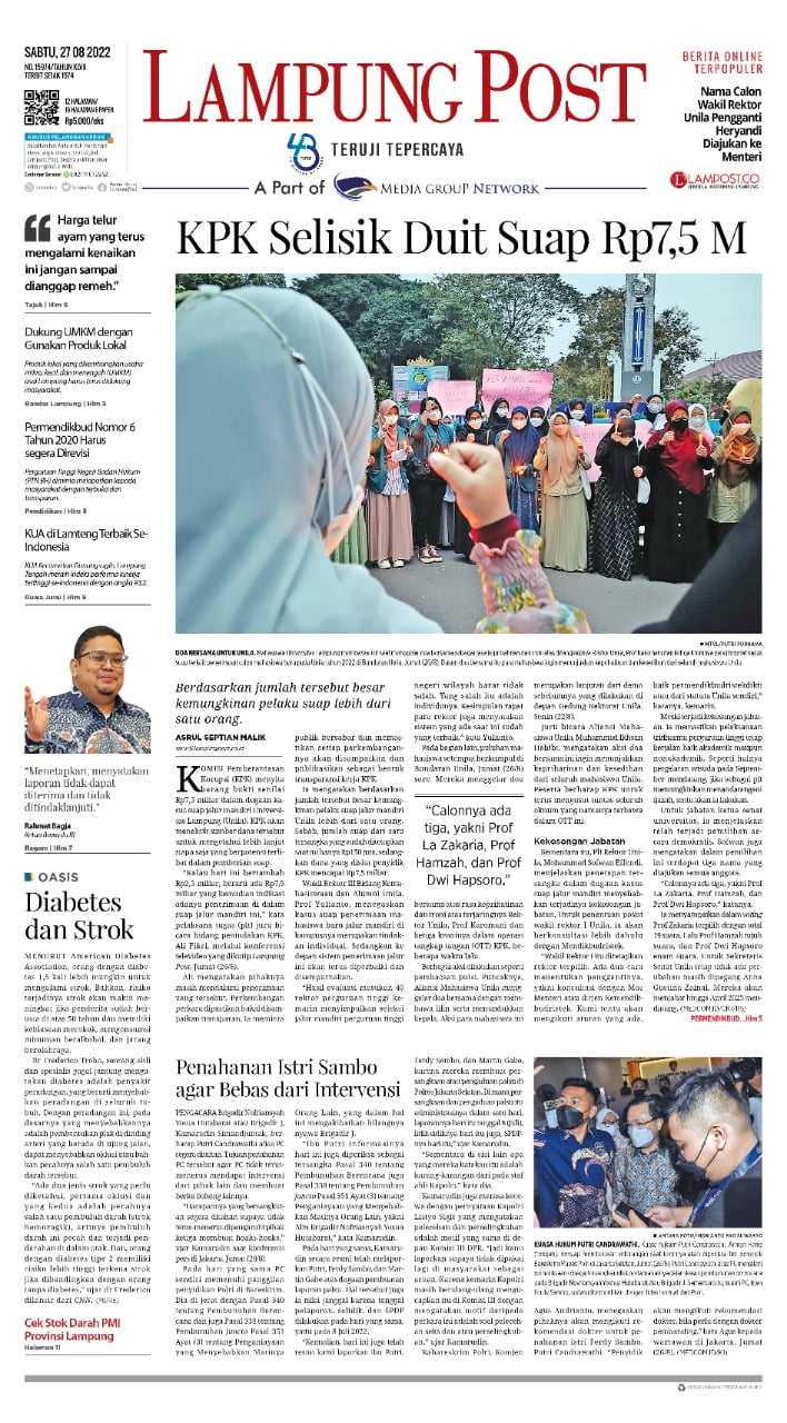 E-Paper Lampung Post, Edisi Sabtu, 27 Agustus 2022