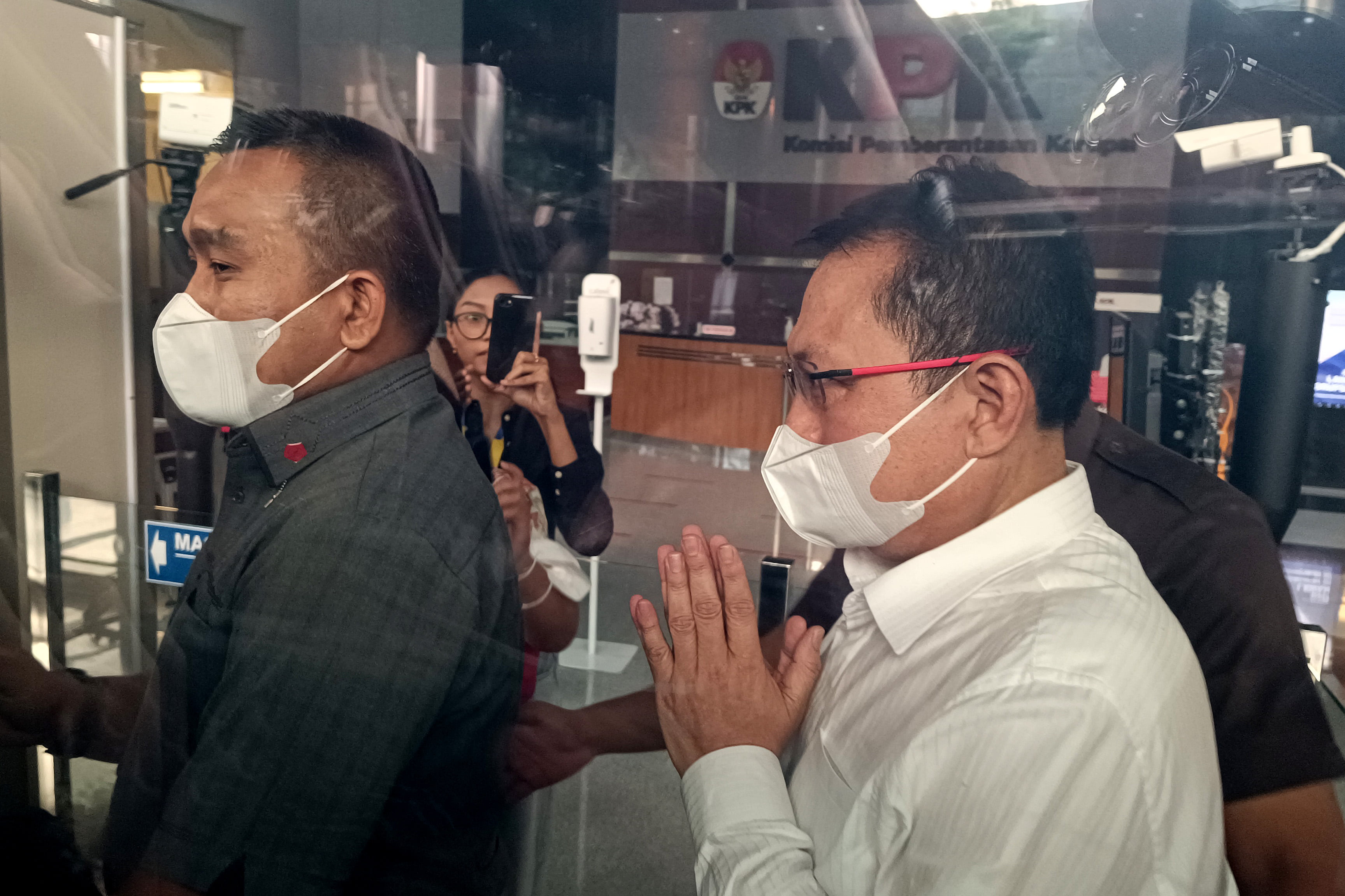 PEMERIKSAAN HASBI HASAN. Sekretaris Mahkamah Agung (MA) Hasbi Hasan berjalan keluar usai menjalani pemeriksaan sebagai tersangka di Gedung Komisi Pemberantasan Korupsi (KPK), Rasuna Said, Jakarta, Rabu (24/5). Hasbi Hasan diperiksa terkait dugaan adanya aliran uang dalam perkara dugaan tindak pidana korupsi berupa suap pengurusan perkara di Mahkamah Agung RI yang melibatkan tersangka mantan Hakim Mahkamah Agung (MA) Gazalba Saleh. MI/Susanto