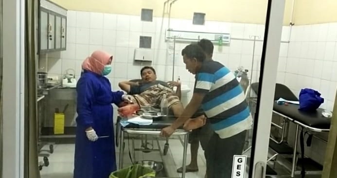 WARGA DISERANG BUAYA. Hendri (31), warga Pekon Kanoman, Kecamatan Semaka, Tanggamus, mendapat perawatan di Puskesmas Siring Betik, Wonosobo karena diserang buaya di Sungai Way Semaka, Jumat (17/9). Kejadian berawal saat korban hendak memasang bubu/alat penangkap ikan di Sungai Way Semaka.