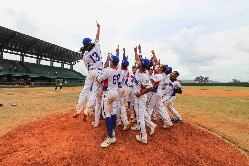 TIM BISBOL PUTRA LAMPUNG KE FINAL. Tim Bisbol Putra Lampung melakukan selebrasi usai memastikan tiket final pada Pekan Olahraga Nasional (PON) XX Papua, Jumat (1/10). Tim Bisbol Lampung melaju ke final usai mengalahkan Banten dengan skor telak 10-0. n DOK FIRDAUS FADLIL/PAKPOK INDONESIA