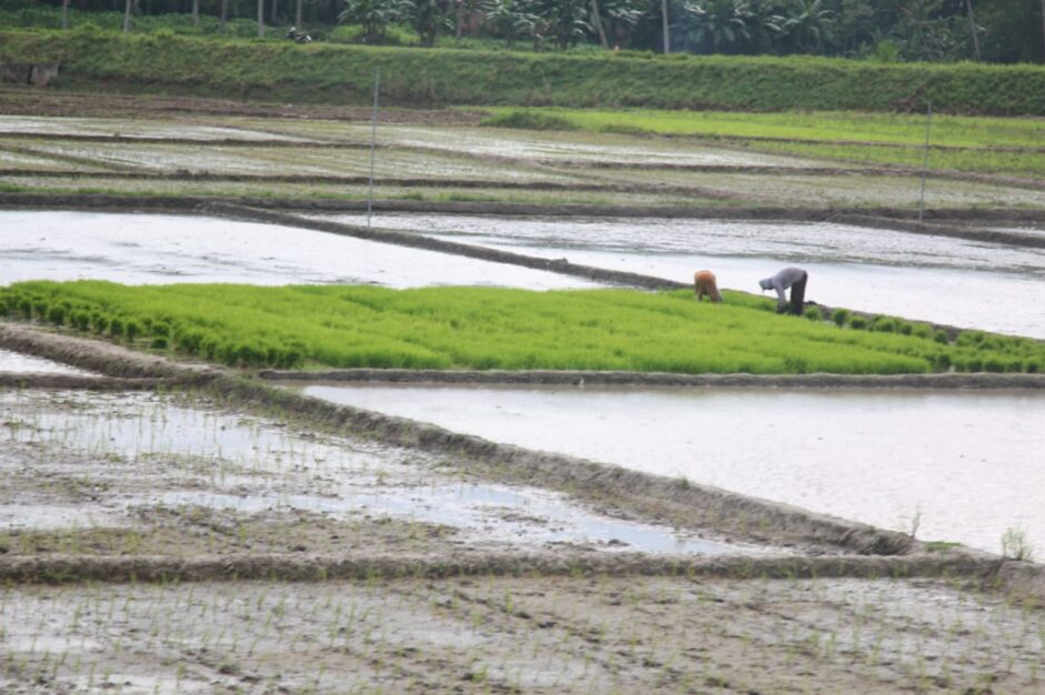 PUPUK BERSUBSIDI. Petani menanam padi di areal persawahan Lampung Selatan beberapa hari yang lalu. Presiden Joko Widodo menilai subsidi pupuk untuk petani senilai Rp33 triliun per tahun adalah program yang salah. Nilai subsidi begitu besar, tetapi tidak diimbangi dengan kenaikan produksi yang signifikan.