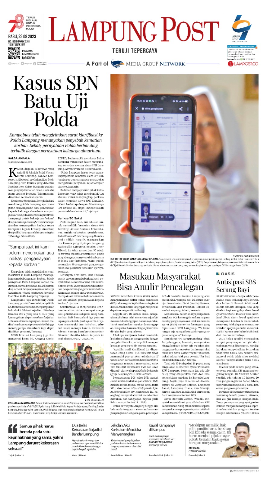E-Paper Lampung Post, Edisi Rabu, 23 Agustus 2023