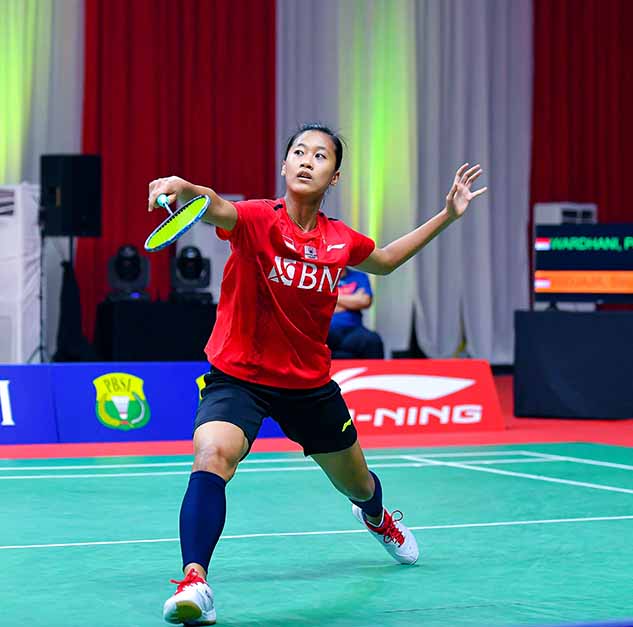 TIM UBER INDONESIA KALAHKAN JERMAN. Tunggal putri Indonesia Putri Kusuma Wardani menyumbang poin untuk Tim Uber Indonesia dengan mengalahkan andalan Jerman Ann Kathrin Spori 21-11, 21-17 pada laga penyisihan Grup A di Ceres Arena, Aarhus, Denmark, Sabtu (9/10). Tim Piala Uber menang 4-1 atas Jerman. ISTIMEWA