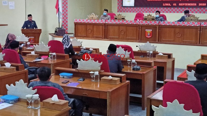 Bupati Lampung Barat Parosil Mabsus saat menyampaikan nota pengantar KUA PPAS 2021 dalam rapat paripurna Dewan, Selasa, 1 September 2020. Pada kesempatan itu, Bupati menegaskan KBM tatap muka tetap berlanjut. Eliyah