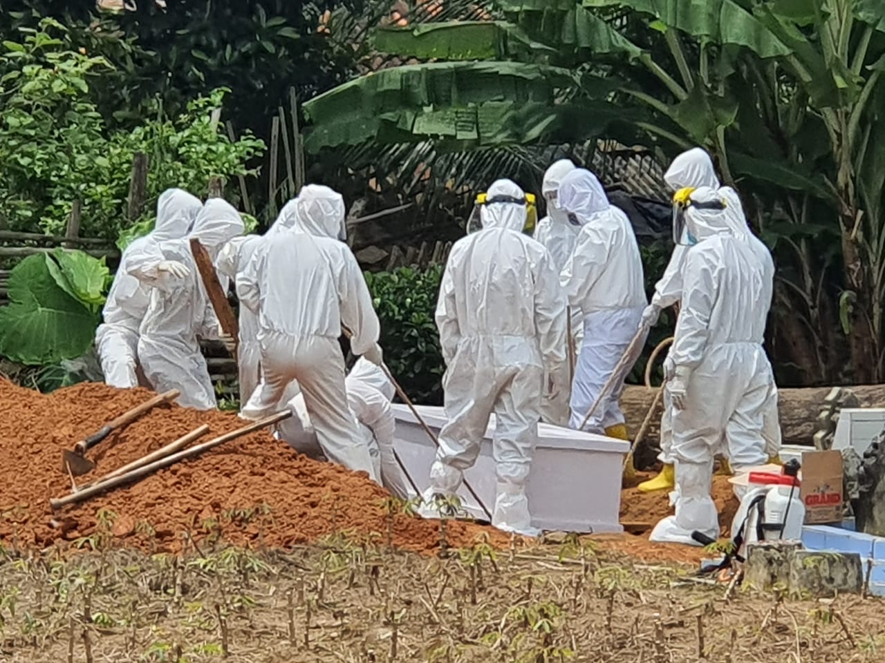 Prosesi pemakaman Kabid Pertamanan dan Pengelolaan Sampah di Dinas Lingkungan Hidup Daerah Kabupaten Tulangbawang yang meninggal saat menjalani perawatan akibat Covid-19, Sabtu (27/2/2021).