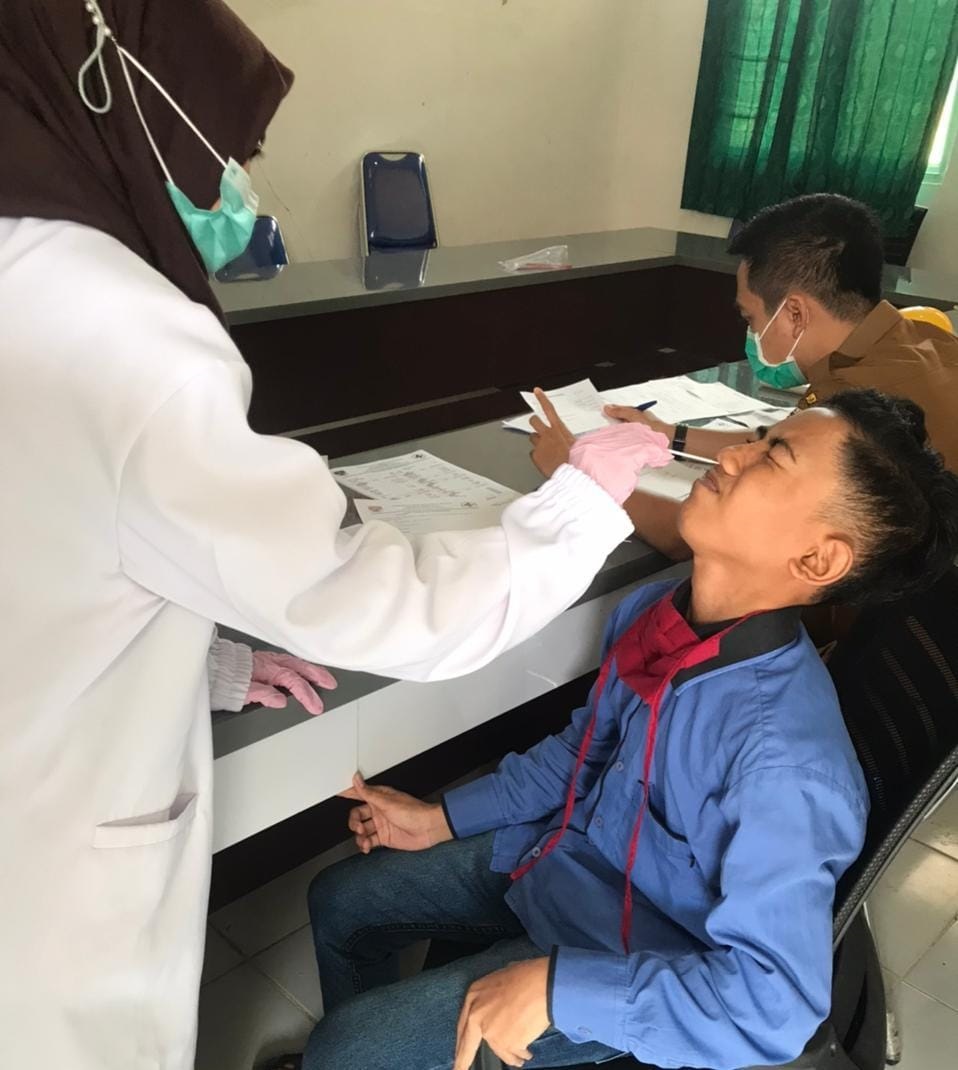 RAPID TEST SANTRI. Puskesmas Wirabangun tengah melakukan rapid test antigen gratis kepada santri di Mesuji, Senin (24/5). Pemkab Mesuji melalui Dinas Kesehatan memastikan 40 santri sehat dan bebas Covid-19. Pemkab melakukan rapid test antigen gratis kepada para santri sebelum kembali menuntut ilmu ke pesantren di Jawa. ISTIMEWA