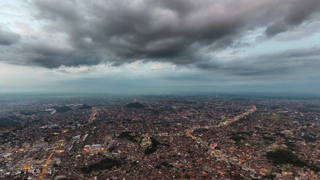CURAH HUJAN TINGGI. Mendung hitam menggantung di atas Kota Bandar Lampung, Rabu (23/1). BMKG mengimbau masyarakat waspada dan berhati-hati terhadap dampak yang dapat ditimbulkan dari curah hujan tinggi dan angin kencang yang akan terjadi pada akhir Januari 2019 ini. LAMPUNG POST/IKHSAN DWI NUR SATRIO