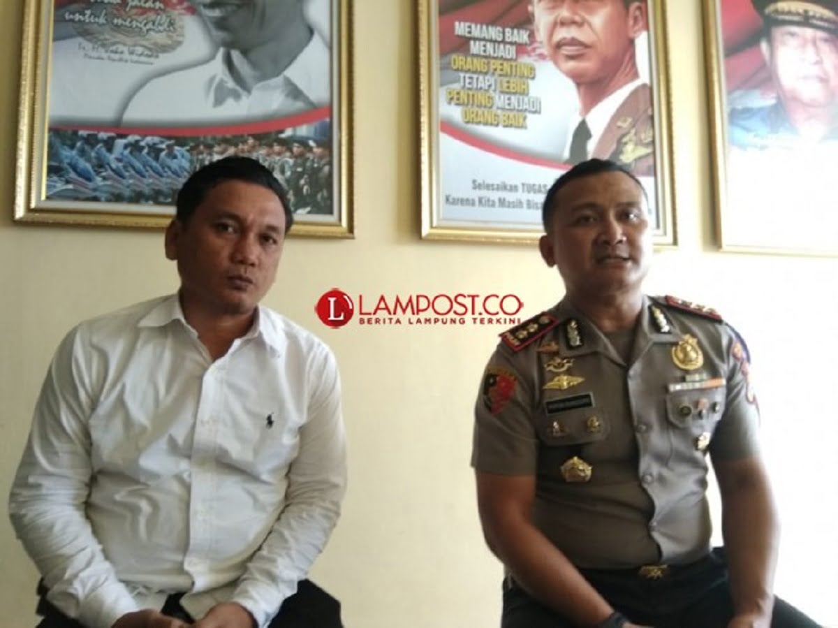 Kapolres Pesawaran AKBP Popon Ardianto Sunggoro (kanan) didampingi Kasat Reskrim Polres Pesawaran AKP Enrico Donald Sidauruk.(Lampost.co/Putra Pancasila)