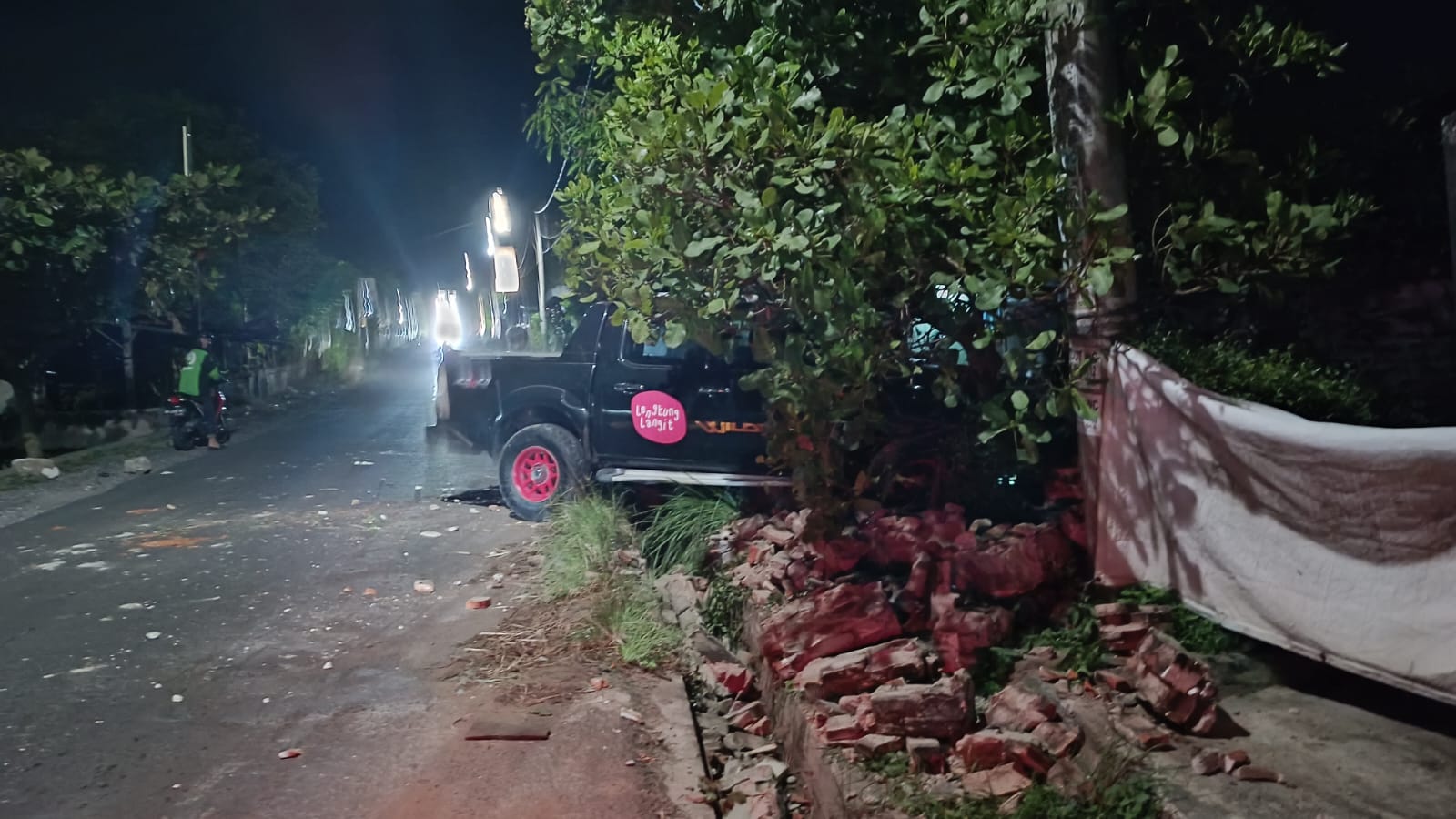 mobil hitam dengan stiker Lengkung Langit menabrak pohon di Jalan Indra Bangsawan, Rajabasa, Bandar Lampung, pada Sabtu (15/10), sekitar pukul 23.00 WIB. LAMPUNG POST/PUTRI PURNAMA