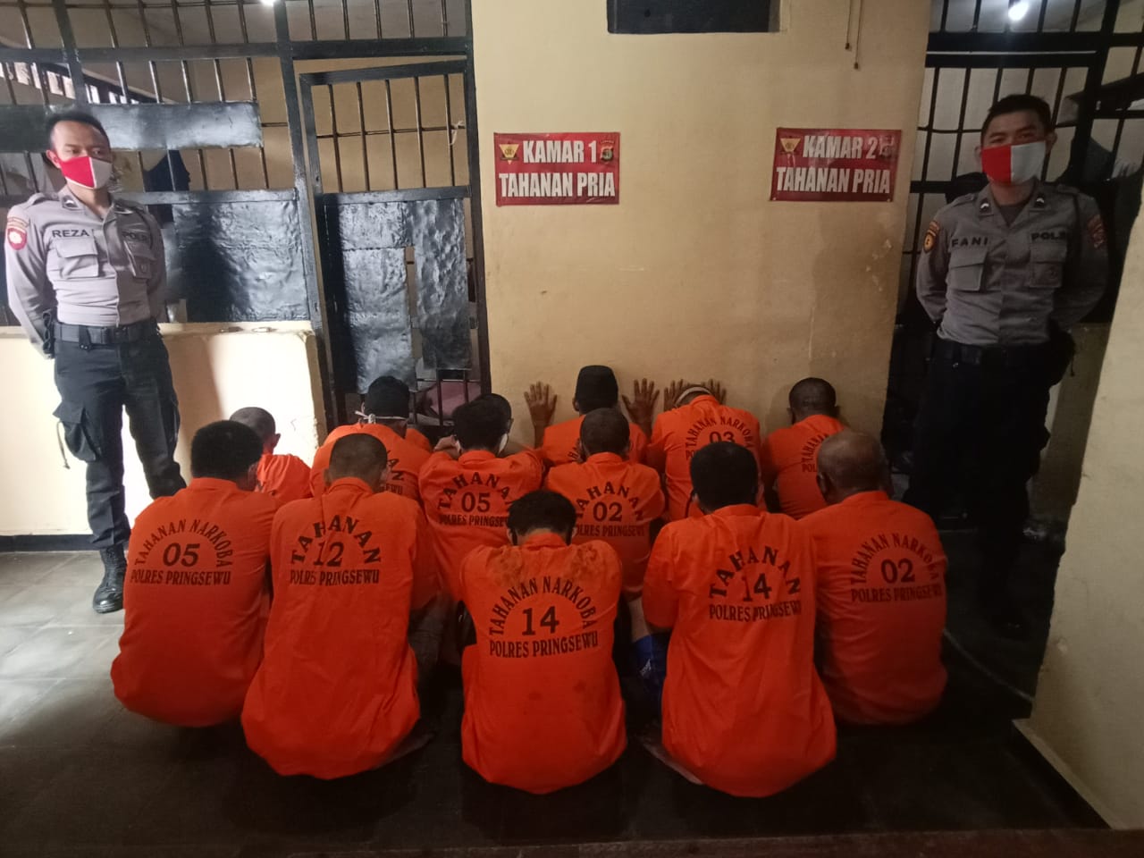 PENGGUNA NARKOBA. Satres Narkoba Polres Pringsewu menangkap 18 pengguna narkoba dalam waktu dua hari, (3—4 Juli). Mereka dibekuk di 15 lokasi berbeda. DOK POLRES PRINGSEWU