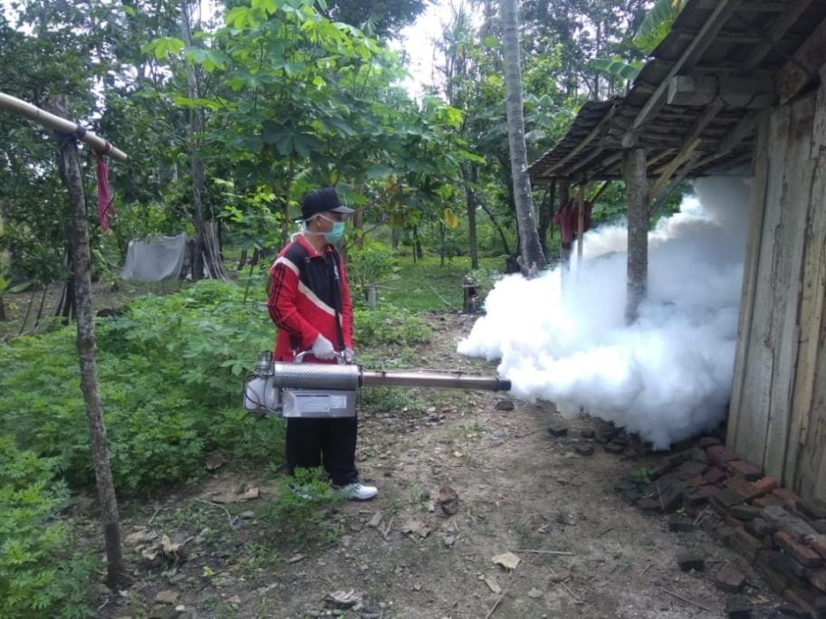PENGASAPAN. Petugas Puskesmas Kecamatan Palas, Lampung Selatan, melakukan pengasapan di Desa Sukabakti, Kecamatan setempat, Senin (10/2). LAMPUNG POST/ARMANSYAH