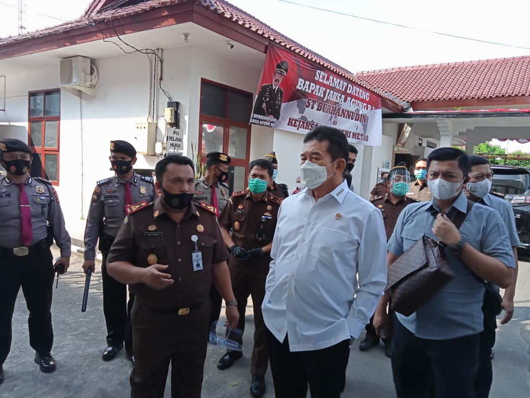 Kepala Kejaksaan Negeri Kota Metro Riki Tarigan (kiri) bersama Jaksa Agung RI ST Burhanuddin (kanan). LAMPUNG POST/BAMBANG PAMUNGKAS