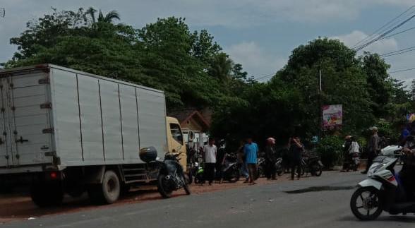 KECELAKAAN. Suasana jalan raya Brawijaya Kelurahan Panaraganjaya, Tulangbawang Barat, usai peristiwa kecelakaan, Kamis (16/1). LAMPUNG POST/AHMAD SOBIRIN