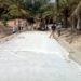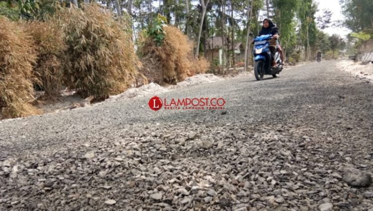 Pembangunan jalan lingkungan Dusun Pematangbom Timur, Desa Kedaung, Kecamatan Sragi, Lampung Selatan, yang sudah terkelupas akibat ulah oknum tak bertanggung jawab, Sabtu, 12 Oktober 2019. (Foto: Armansyah)