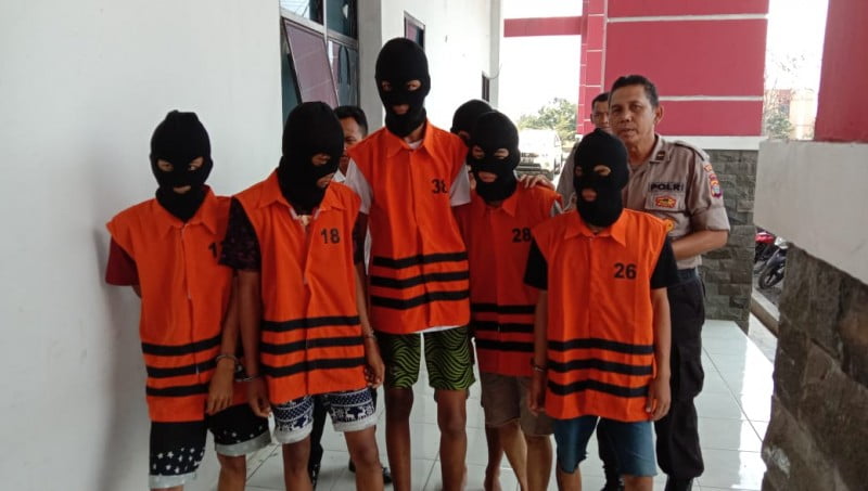 PENCURI DITANGKAP. Para pelaku pencuri motor dan HP yang ditangkap Polres Lampung Selatan. (Foto: Perdhana)