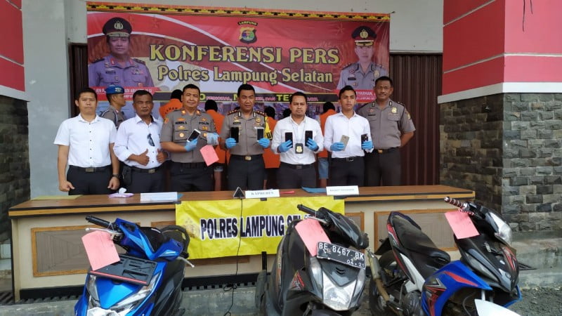 Kapolres Lampung Selatan AKBP M Syarhan tunjukkan barang bukti hasil ungkap kasus pencurian tiga pelajar. (PERDHANA WIBYSONO)